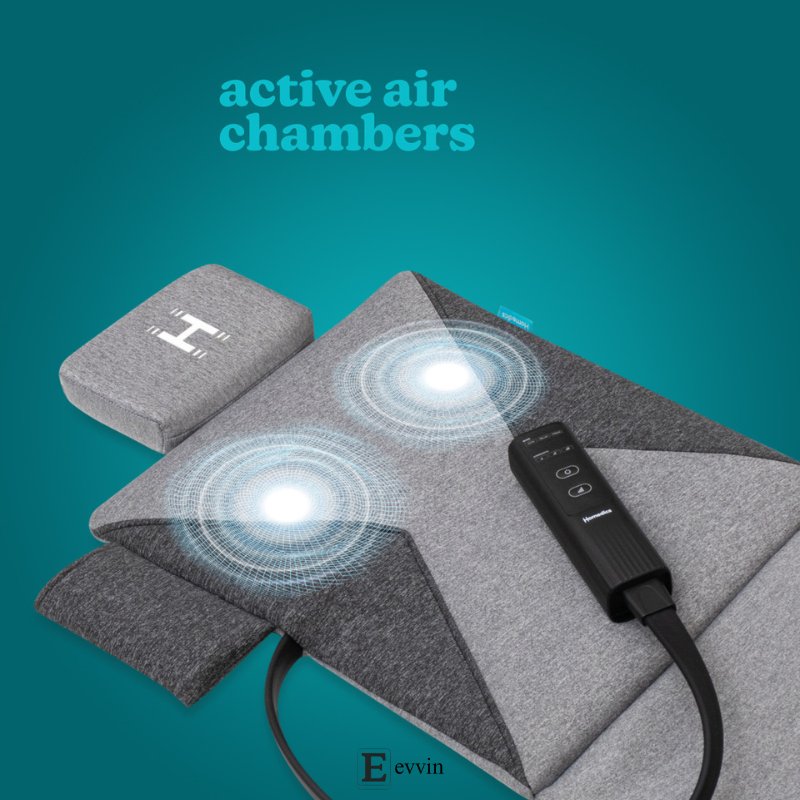 The mat uses precision-controlled air-chambers that inflate and deflate in carefully programmed sequences — gently lifting, stretching and decompressing your spine so you don’t have to force the movement yourself.